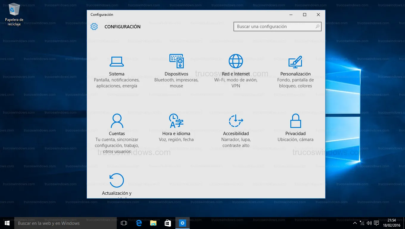 A continuación, se presentan capturas del sistema Windows 10. Estas imágenes ilustran el regreso del Menú Inicio, la introducción del Centro de Actividades y la transición de la gestión del sistema a la aplicación Configuración.
