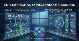 Olvida los cables. Aprende a vincular tu Android con Windows de forma inalámbrica para controlar apps, fotos y llamadas desde tu monitor con Enlace Móvil.