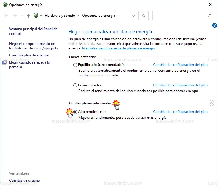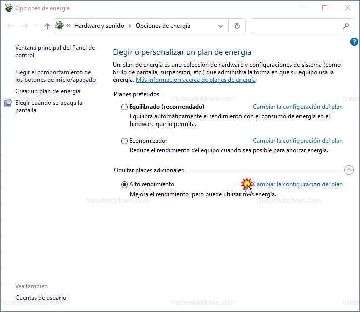 Cómo activar el plan de energía de alto rendimiento en Windows 10