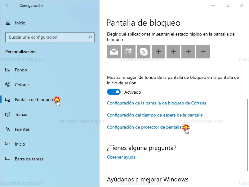 - En la barra lateral izquierda, selecciona Pantalla de bloqueo.