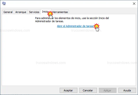 - Vamos a la pestaña Inicio y pinchamos en el enlace Abrir el Administrador de tareas.