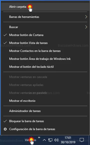 - Haz clic con el botón derecho del ratón en una zona vacía de la Barra de tareas.