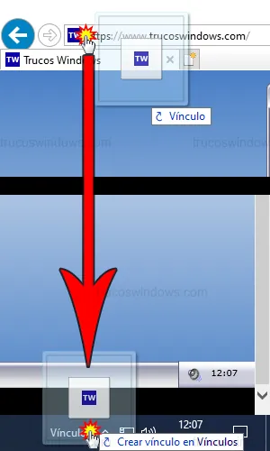 Para guardar un sitio web, abre tu navegador preferido. Haz clic en el icono situado a la izquierda de la barra de direcciones (generalmente un candado o un círculo) y, sin soltar, arrástralo hasta la palabra Vínculos en la barra de tareas.