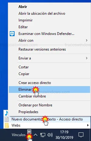Aviso: Al borrar un vínculo desde aquí, solo estás eliminando el acceso directo. El archivo original, la carpeta o el programa permanecerán intactos en su ubicación original.
