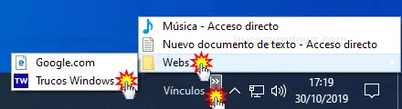 Una vez creado, aparecerán dos pequeñas flechas al lado del texto. Al pulsarlas, verás tu acceso directo listo para usar.