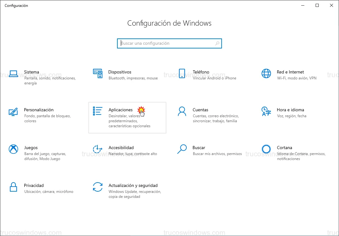 - En el menú principal, pulsa sobre la sección Aplicaciones.