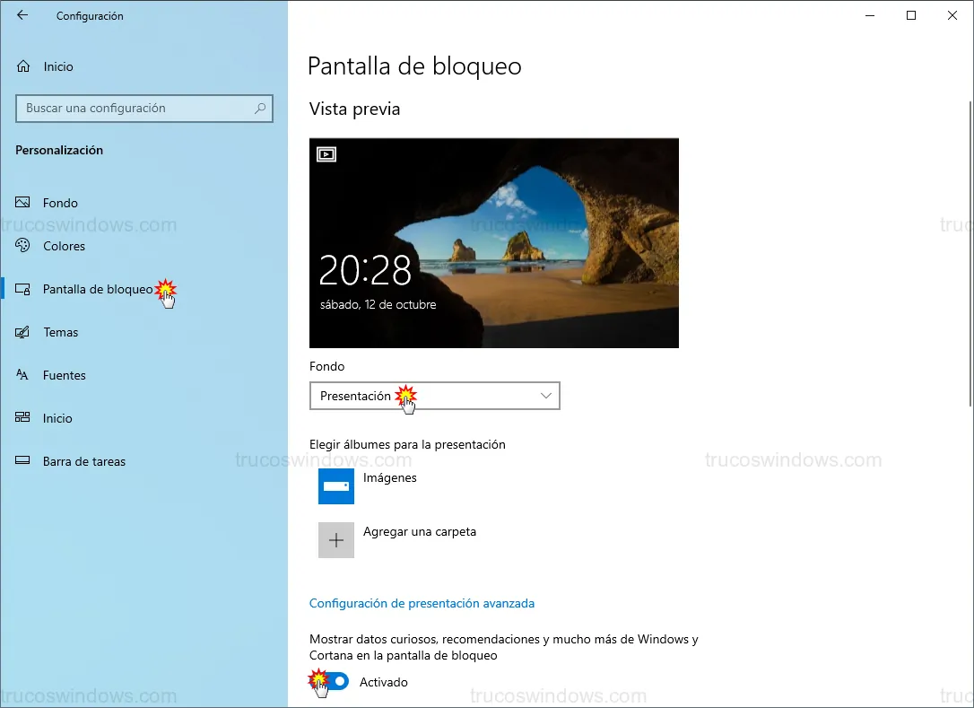 Cómo cambiar y personalizar el fondo de la pantalla de bloqueo en Windows 10