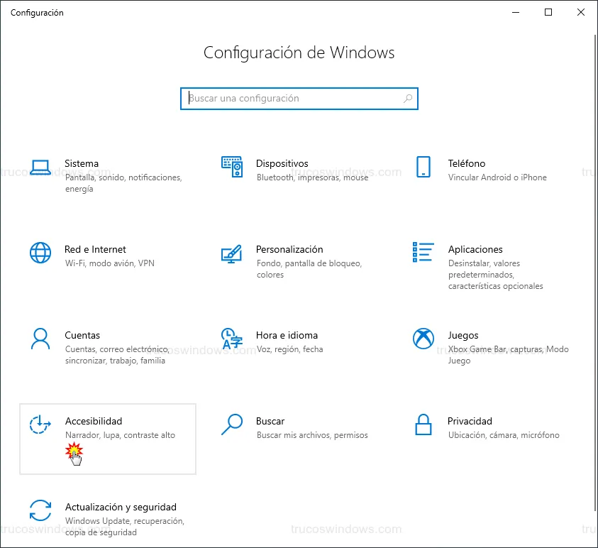 - En la ventana principal de configuración, pulsa sobre la categoría de Accesibilidad.