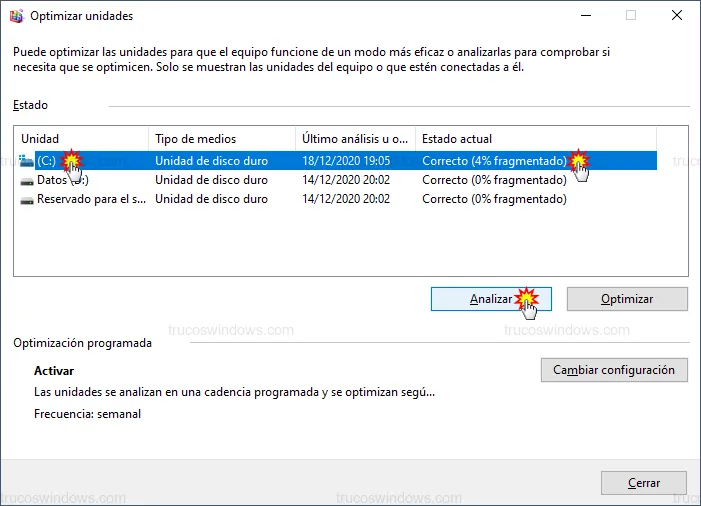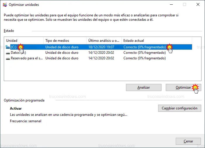 Optimizar y desfragmentar la unidad