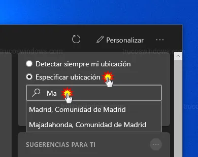 Si el clima no detecta bien tu ciudad, puedes especificarla manualmente.