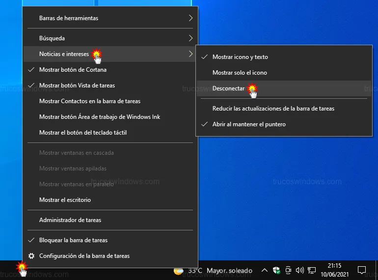 - Haz clic derecho en la barra de tareas.