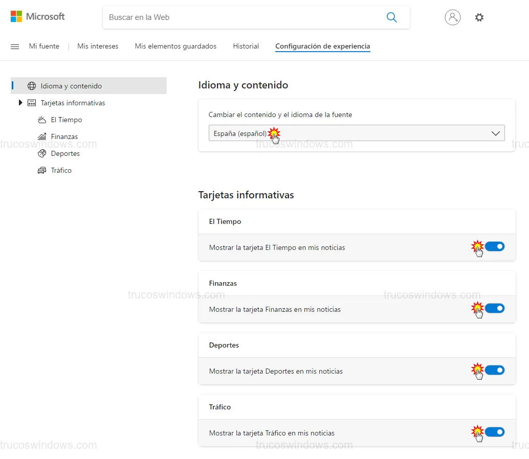 Personalizar tus noticias e intereses
