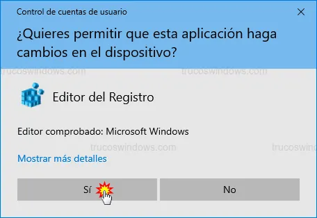 regedity pulsa el botón Aceptar o la tecla Intro.