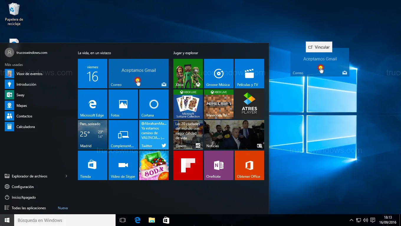 Durante el movimiento, el sistema mostrará un pequeño indicador con el texto Vincular. En ese momento, soltamos el botón del ratón y el sistema generará automáticamente el icono de acceso rápido.