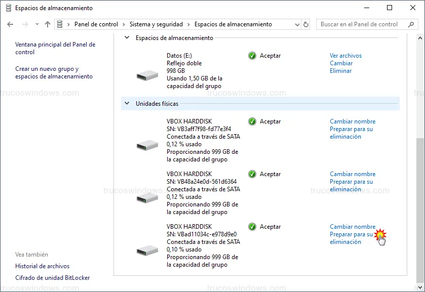 Puedes añadir un tercer disco al grupo para aumentar la seguridad. En este caso, Windows mantendrá tres copias exactas del dato.