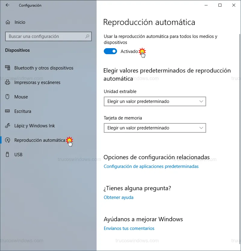 - En el menú lateral izquierdo, haz clic en la opción Reproducción automática.