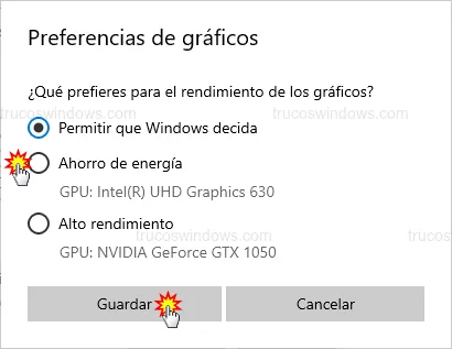 Asignar alto rendimiento o ahorro de energía