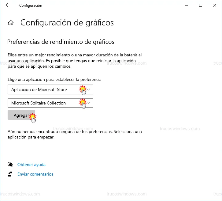 Una vez que la aplicación aparece en la lista inferior, podemos dictar qué hardware debe utilizar: