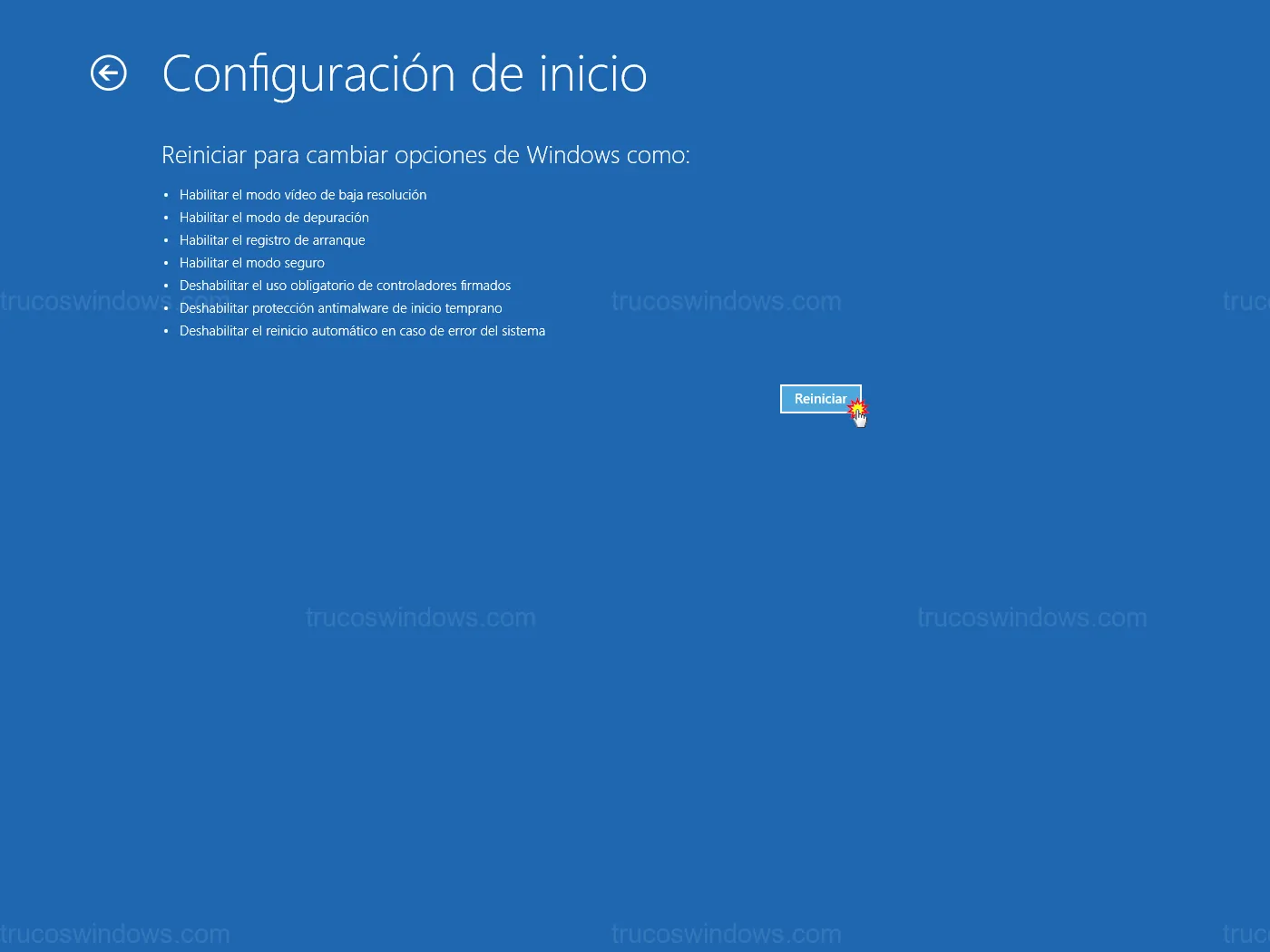 - Modo Seguro estándar: Carga lo mínimo indispensable para que el sistema funcione.