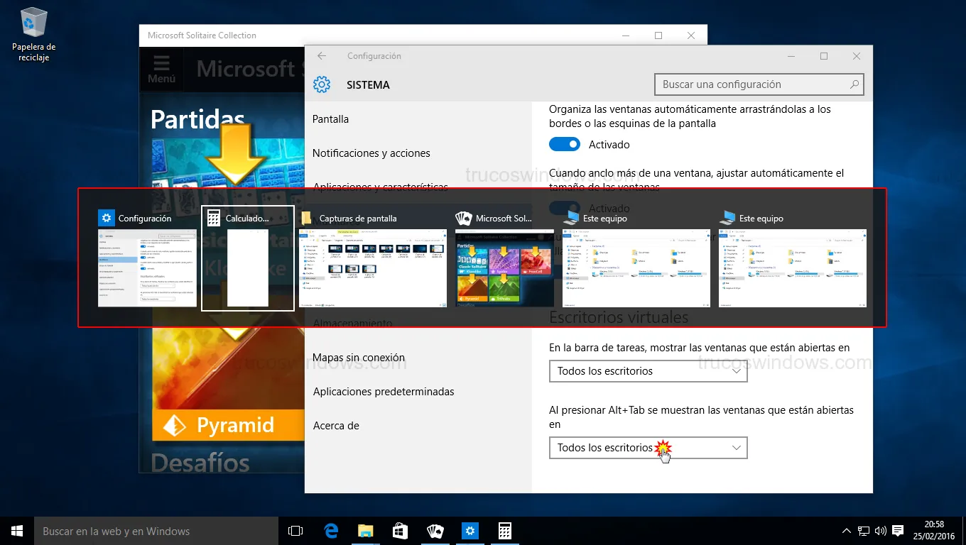 Asimismo, puedes ajustar el comportamiento de Alt + Tab para que incluya las ventanas de todos los espacios. Esto te permitirá saltar entre escritorios automáticamente al seleccionar una aplicación.