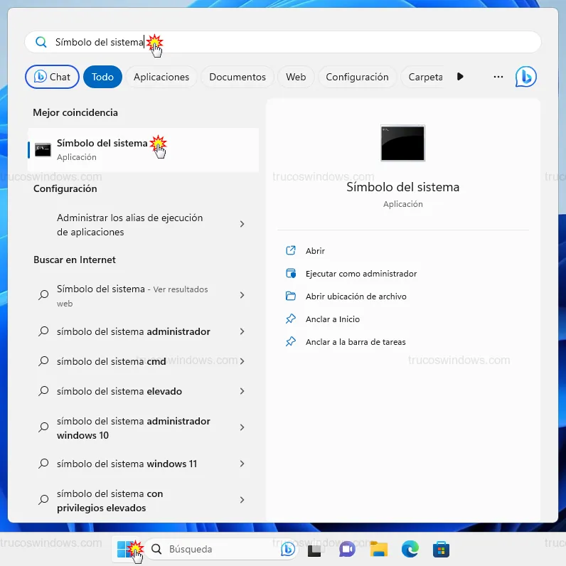 Símbolo del sistemay pulsa Intro.