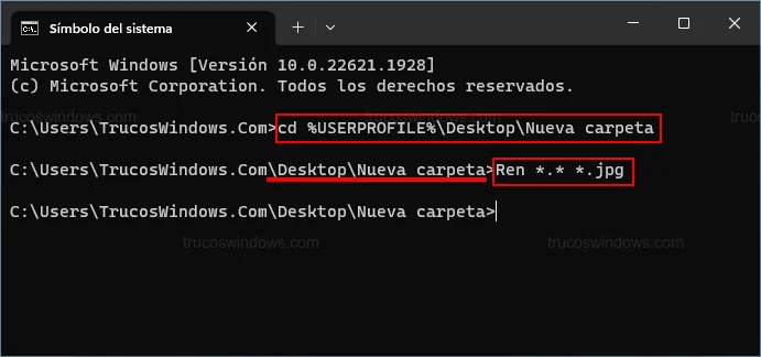 cd %USERPROFILE%\Desktop\Nueva carpeta