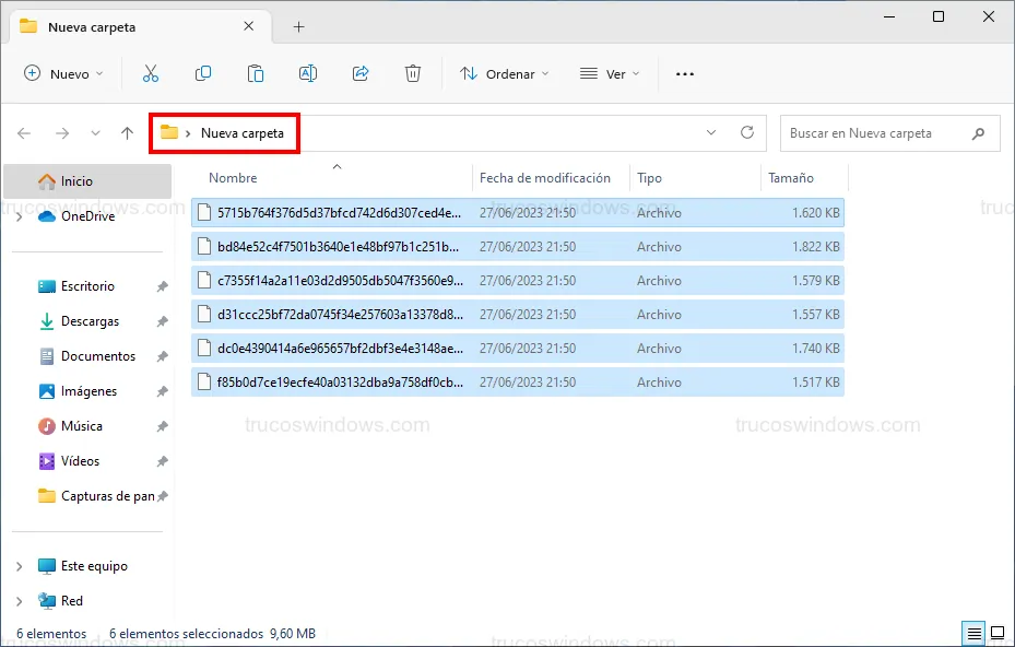 - Crea una carpeta en tu escritorio llamada Nueva carpeta y pega los archivos dentro con Ctrl + V.