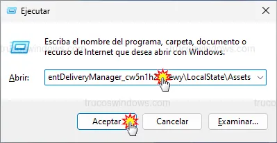 - Copia y pega la siguiente ruta y pulsa Aceptar: