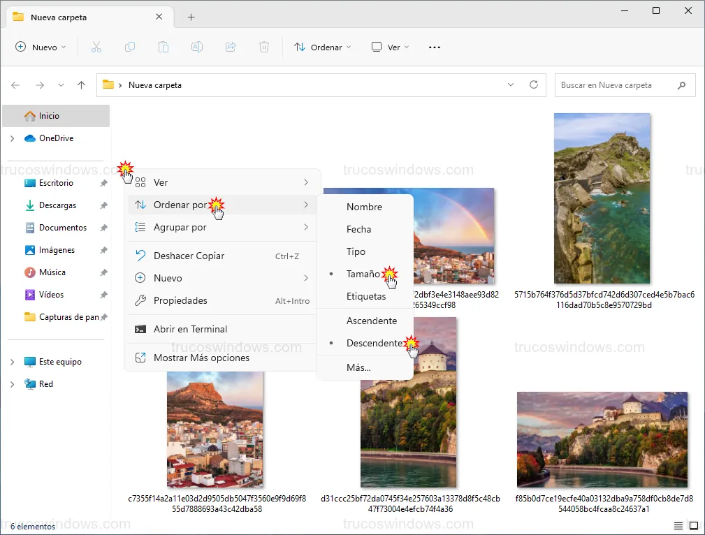 - Haz clic derecho en la carpeta y selecciona Ver > Iconos muy grandes.
