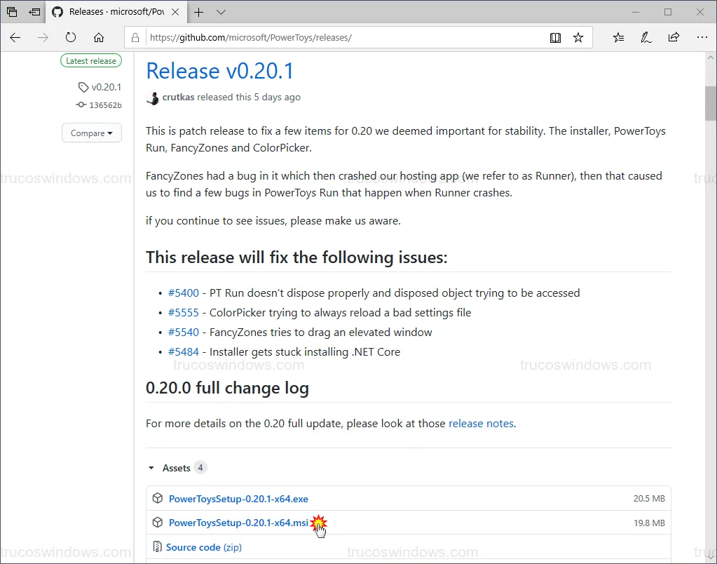 - Accede a la página oficial de lanzamientos: PowerToys GitHub Releases.