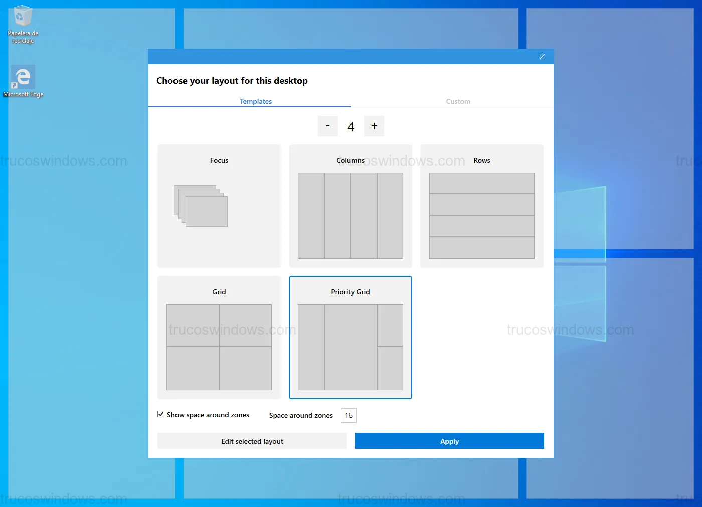 Permite crear diseños de cuadrículas complejas. Al arrastrar una ventana manteniendo pulsada la tecla Shift, esta se ajustará perfectamente a la zona elegida, permitiendo un flujo de trabajo multitarrea superior.
