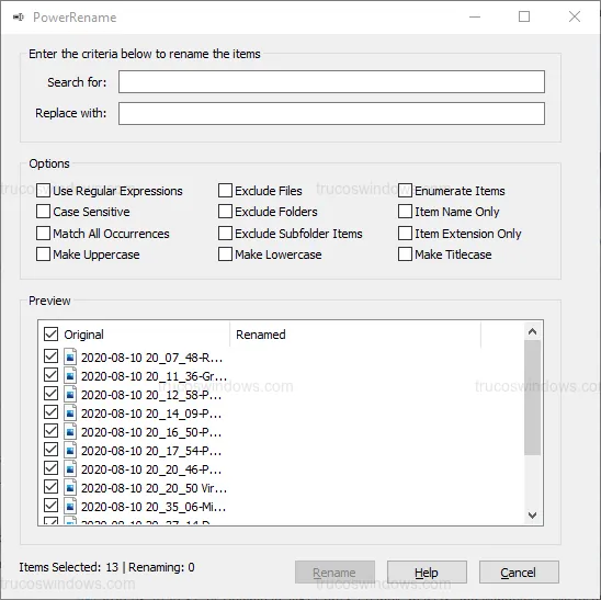 La herramienta definitiva para renombrar archivos. Permite buscar y reemplazar cadenas de texto de forma masiva con previsualización en tiempo real.