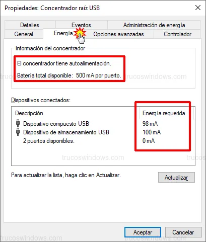 Cómo saber cuánto consume un dispositivo USB en Windows 10