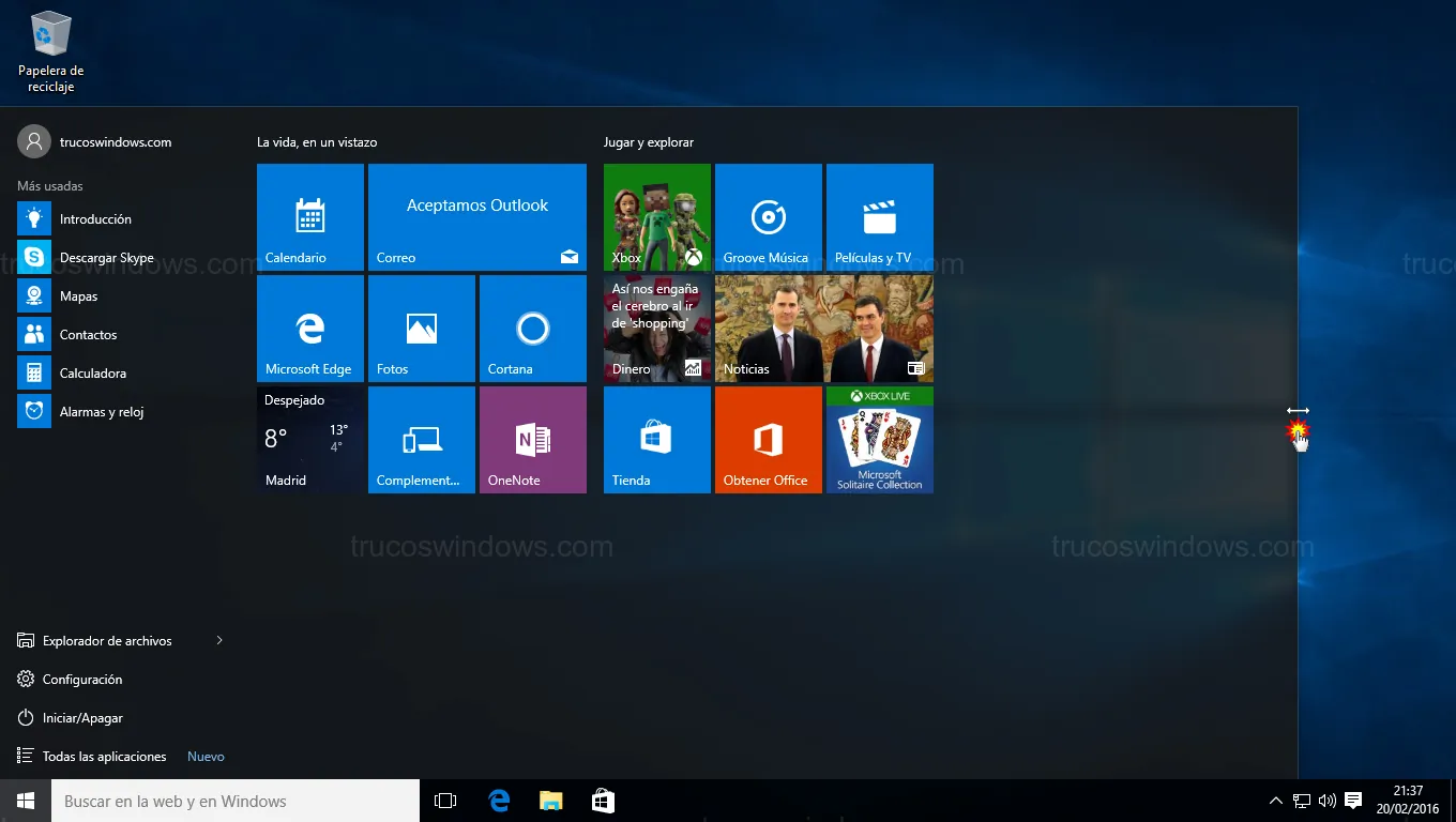 Si prefieres la experiencia de Windows 8, puedes activar el modo Pantalla completa desde Configuración > Personalización > Inicio.