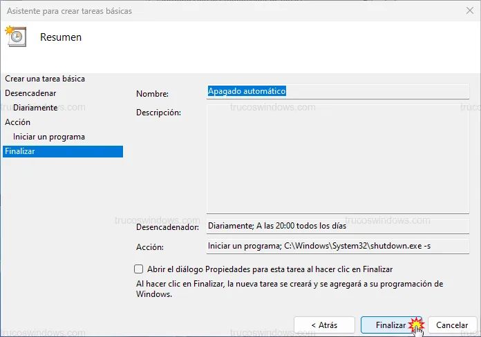 2. Apagar el ordenador automáticamente (Programador de tareas)