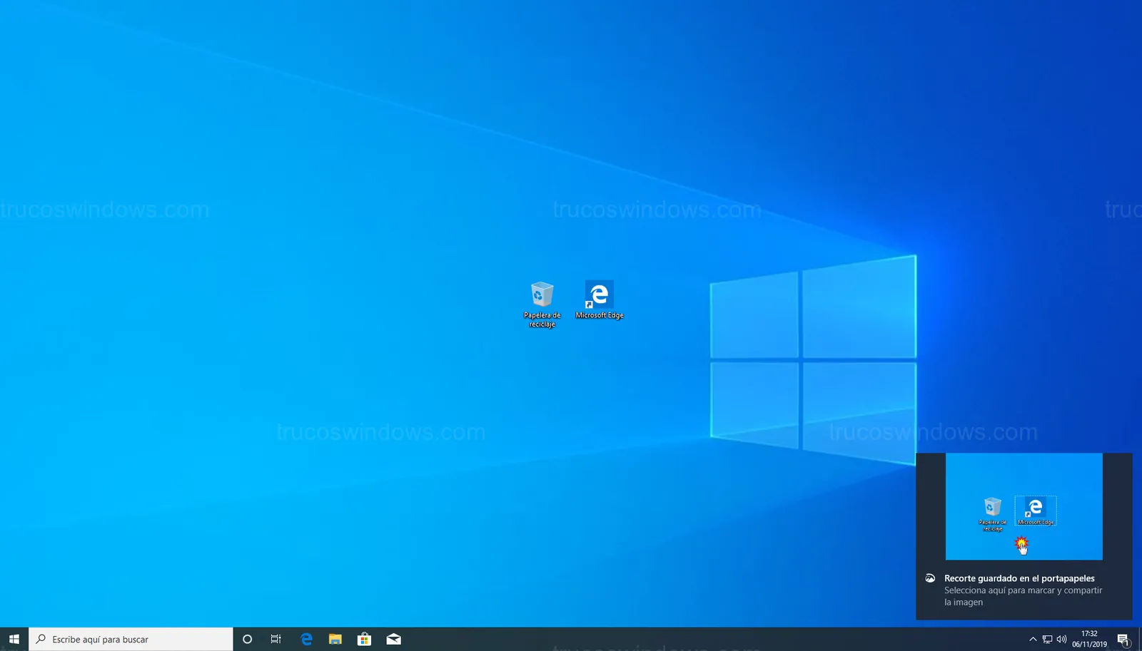 - Recorte de pantalla completa: Captura la totalidad de tu escritorio de forma inmediata.