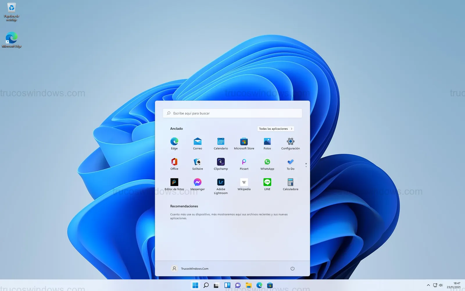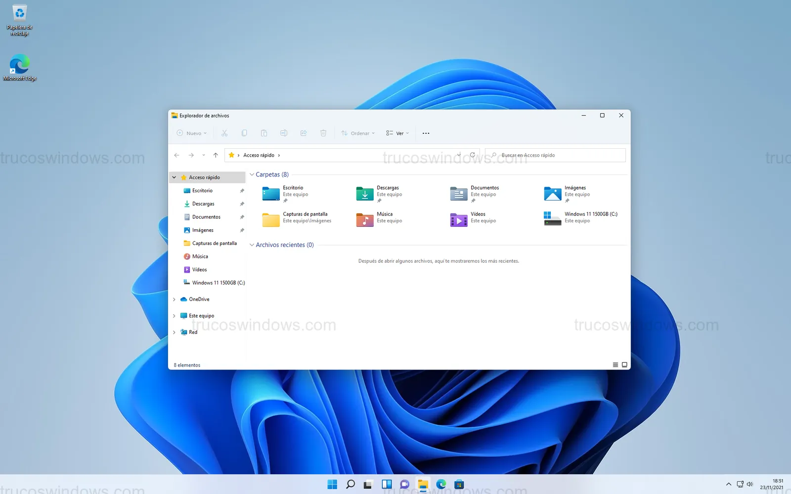 A continuación, se muestran capturas de pantalla de la interfaz inicial de Windows 11, destacando su rediseño centrado y las esquinas redondeadas.