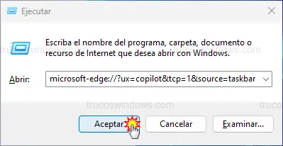 microsoft-edge://?ux=copilot&tcp=1&source=taskbar - Pulsa Intro o haz clic en Aceptar.