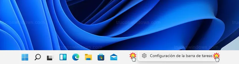 - Haz clic derecho en cualquier zona libre (sin iconos) de la barra de tareas y selecciona Configuración de la barra de tareas.