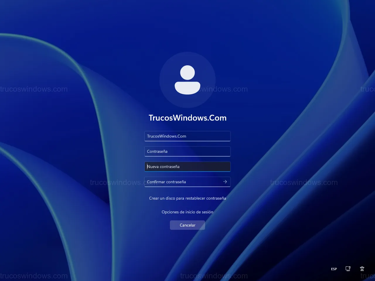 Campos de entrada para renovar la contraseña de usuario en Windows 10 y 11