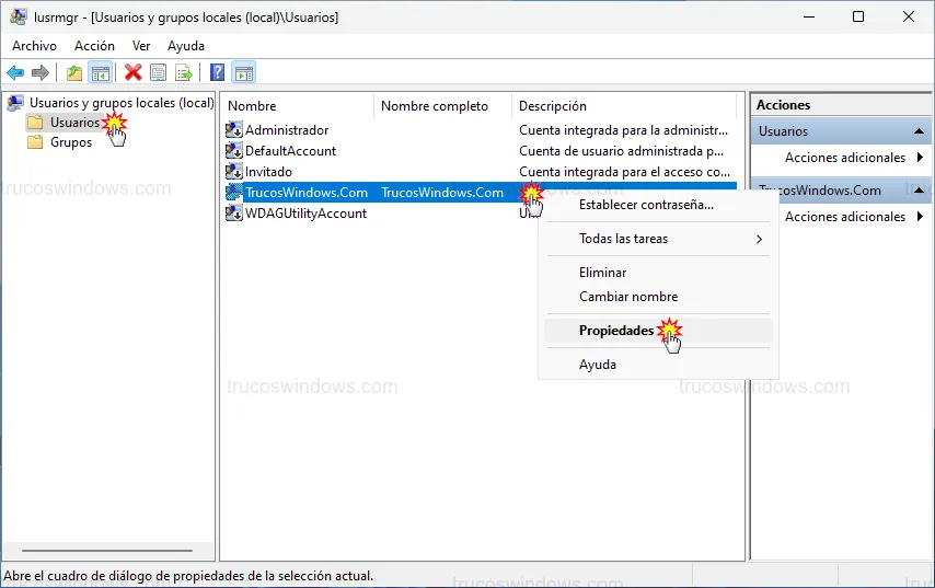 2. Haz clic derecho sobre tu nombre de usuario y selecciona Propiedades.