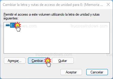 - Selecciona Cambiar la letra y rutas de acceso de unidad....