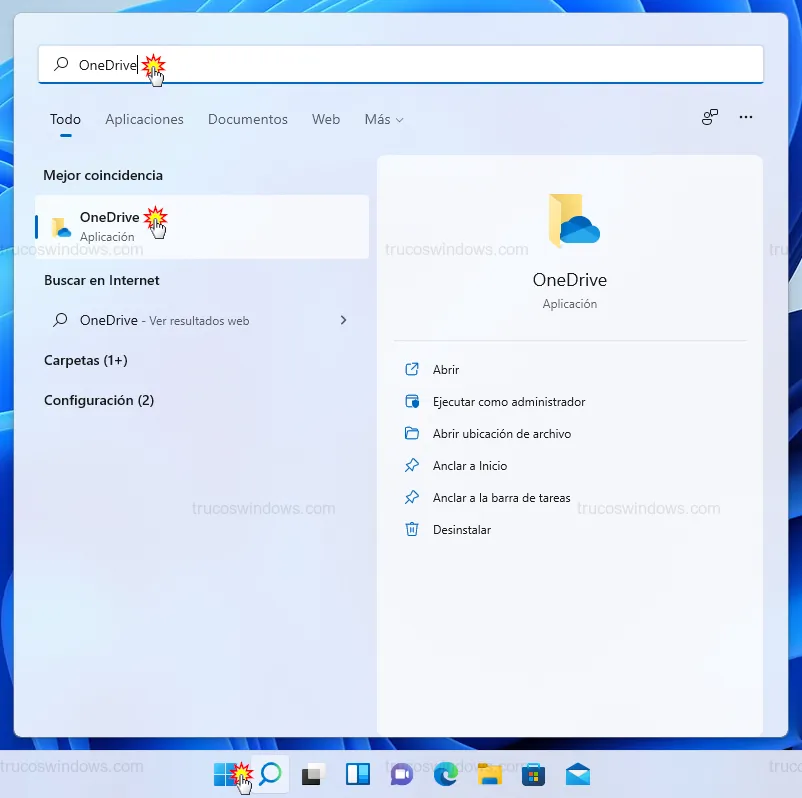 Pulsa la tecla Windows, escribe OneDrive y abre la aplicación.