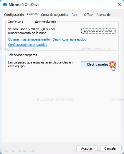 - En la Configuración de OneDrive, ve a la pestaña Cuenta.