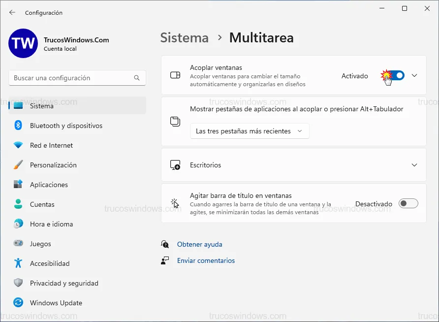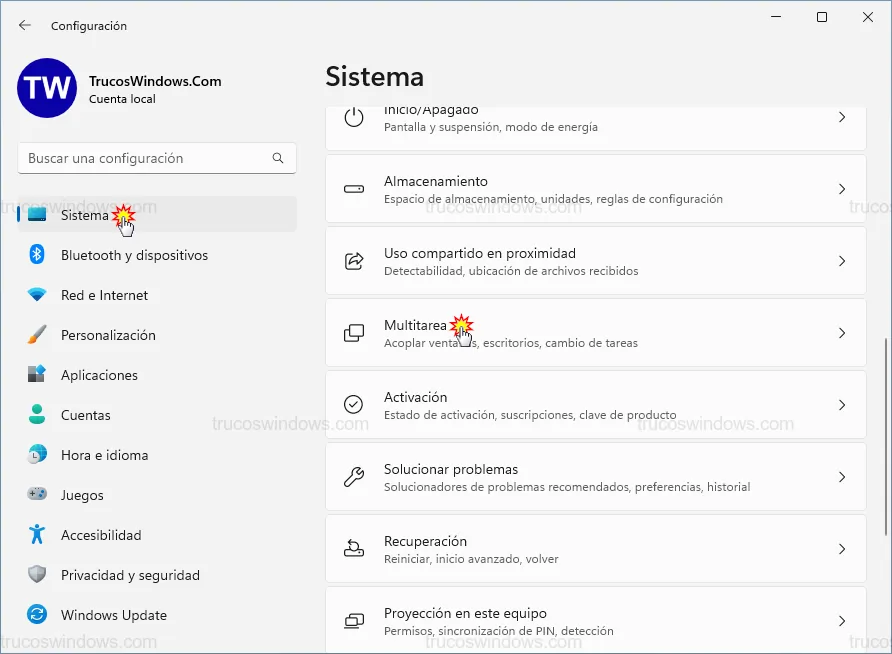 Acceder a los ajustes de Multitarea en Windows 11