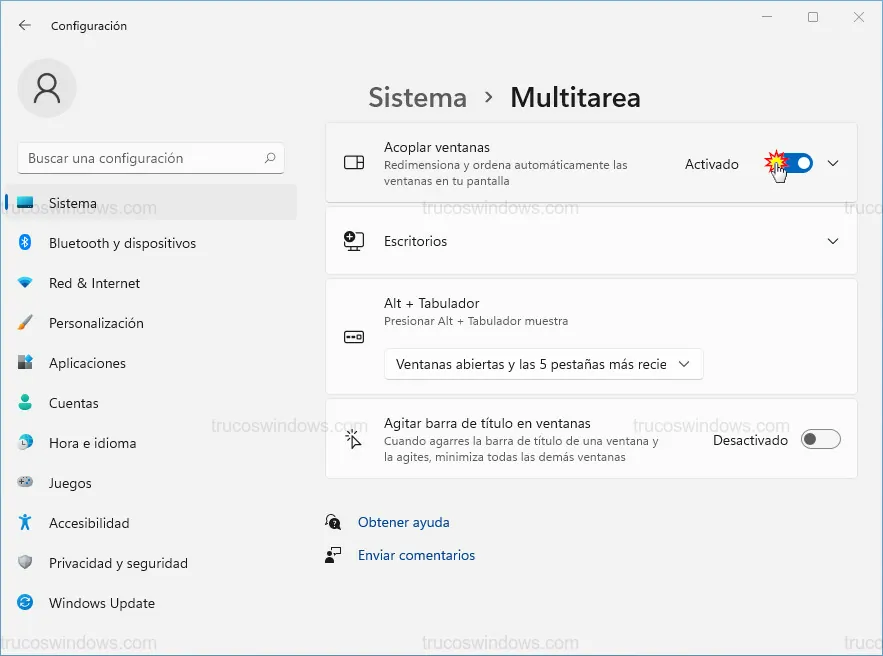Si prefieres una gestión de ventanas clásica y sin interrupciones visuales, puedes inhabilitar el sistema de acoplamiento de ventanas en Windows 11 de forma permanente o parcial.