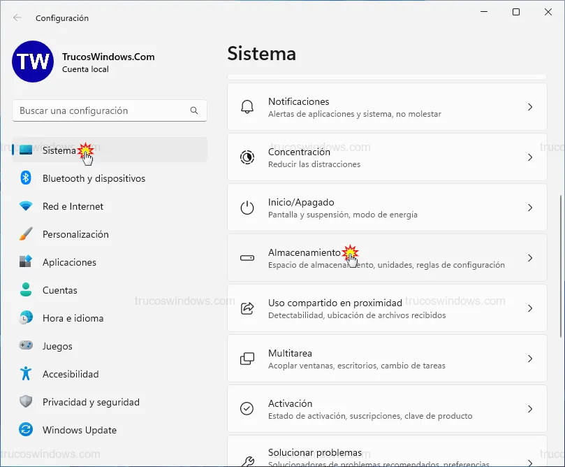 Si la opción anterior no aparece directamente, Windows 11 agrupa estos archivos pesados en un menú específico. Dirígete a: