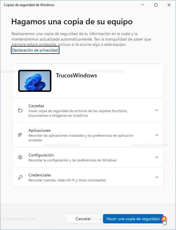 Windows Backup (o Copias de Seguridad de Windows) es la herramienta definitiva de Microsoft para que cambiar de ordenador no sea un trauma. Este sistema almacena en tu cuenta de OneDrive no solo tus archivos, sino también un "esquema" de tus aplicaciones instaladas y tus preferencias personales.