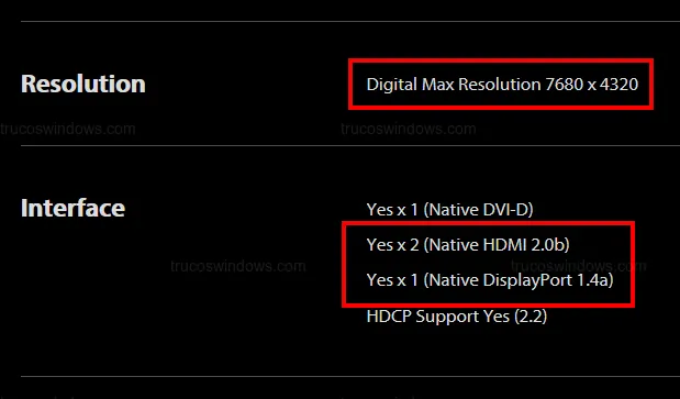 Tu GPU debe ser capaz de procesar la resolución y los FPS (cuadros por segundo) que el monitor demanda. Revisa la Digital Max Resolution en la web del fabricante.