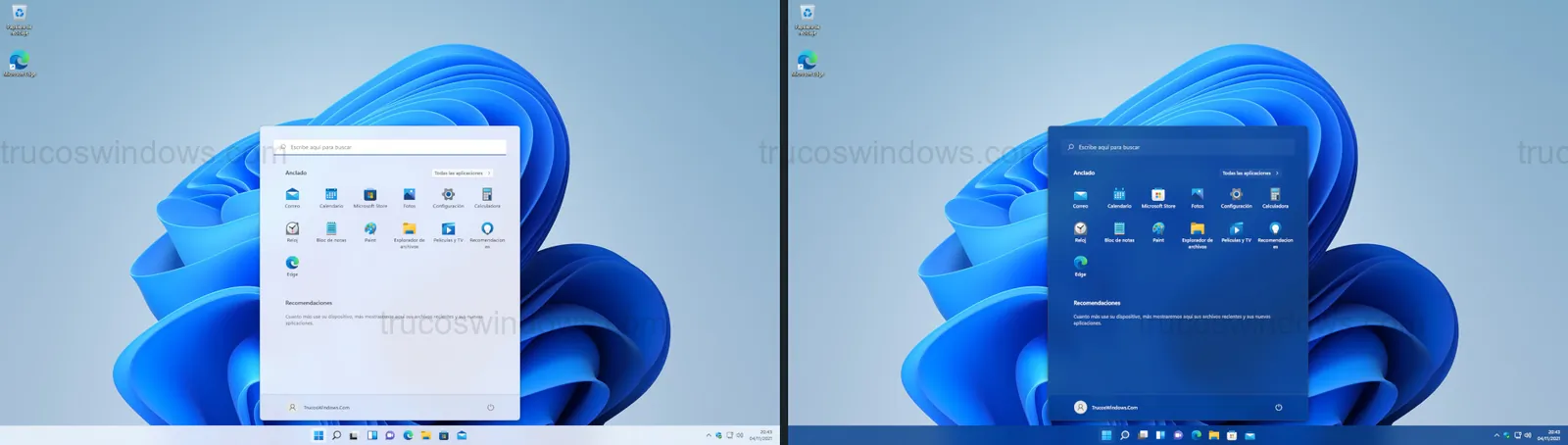 Personalizar el color del menú de Inicio